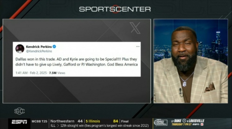 2月5日讯 今天,浓眉被独行侠交易到奇才。在节目中,帕金斯谈到了自己在东眉交易刚发生时自己的表态。当时他表示:“独行侠赢了这笔交易。浓眉和欧文的组合会很特别。”